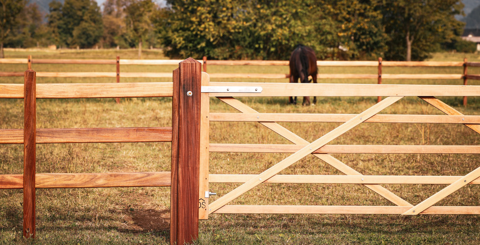 The fencing was complimented with 3.6m x 1.4m tropical hardwood field gates delivering a unified look and unparalleled longevity.